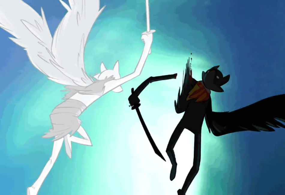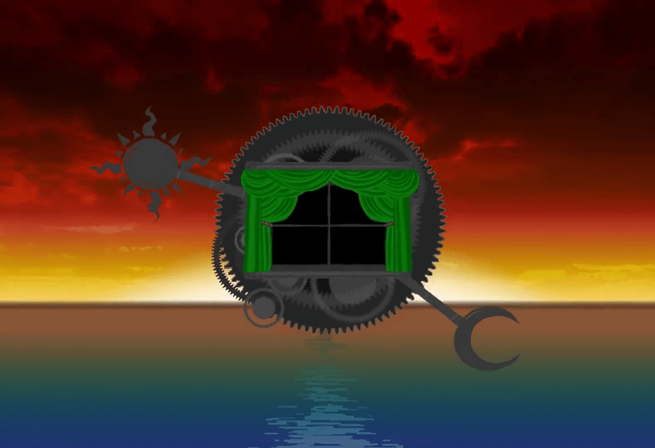 These victory poses fade into curtains floating in Hussiespace, set to spooky denizen noises I guess to indicate that we aren’t done just yet? The fadeout is very slow and ends with a black and white image for about thirty seconds, to make Collide’s length exactly 18 minutes. I wonder if the intent behind the flash’s length was so that Act 6 Act 6 Act 6 would be 18 (6 + 6 + 6) minutes long? I think I just cracked a mystery, guys.