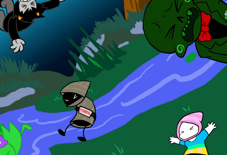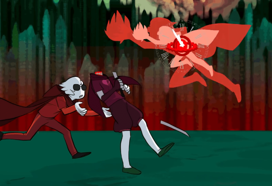 Cans’ fourth wall shenanigans invite some funny little sequences with the characters not involved in fighting, as shown above. Just wanted to point this scene out because it’s cute.