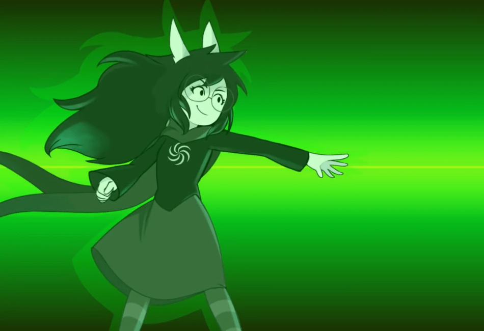 Set to appropriately dramatic music, Jade is leaping into action and doing something grand and heroic with her versatile powers just like in Cascade… or at least she’s trying to. Her characteristic bravery shines bright as she intervenes in the dogs’ fight, and it feels like there’s a glimmer of hope in her heroic fulfillment despite god tier Calliope’s prior words.