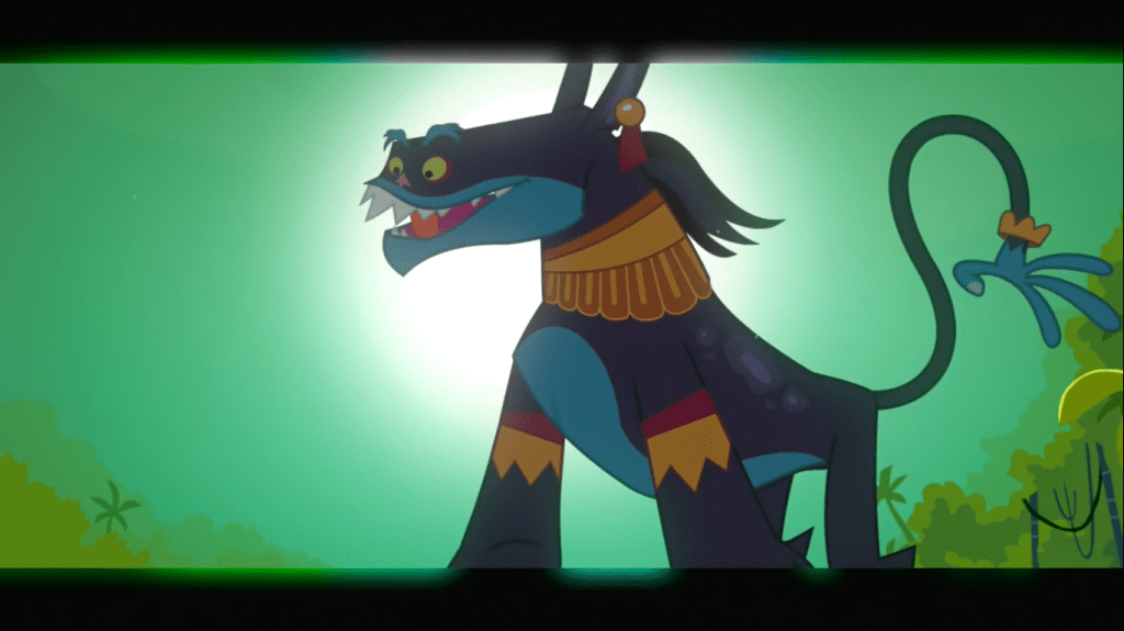 Daring Do encounters the fearsome Ahuizotl, who unexpectedly greets Rainbow Dash in Pinkie Pie’s voice, snapping her back to reality. This transition does a great job showing how immersed Rainbow Dash is in this book. Normally, this sort of transition only occurs when a character wakes up from a dream, and when you’re dreaming, you typically think the dream is real until you wake up. The transition occurring simply from reading a book does a great job showing the effect of being immersed in a book: it feels like you are the one experiencing those events to the point where it’s startling to get shaken out of it.