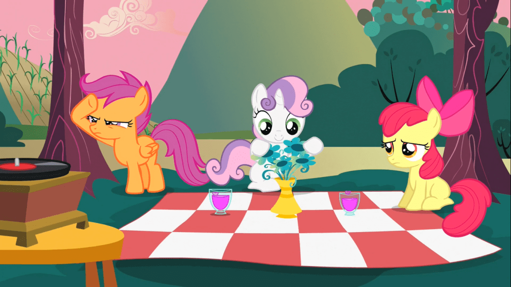 Scootaloo: As long as you’re here, why not have a bite to eat from this romantic-looking picnic?
