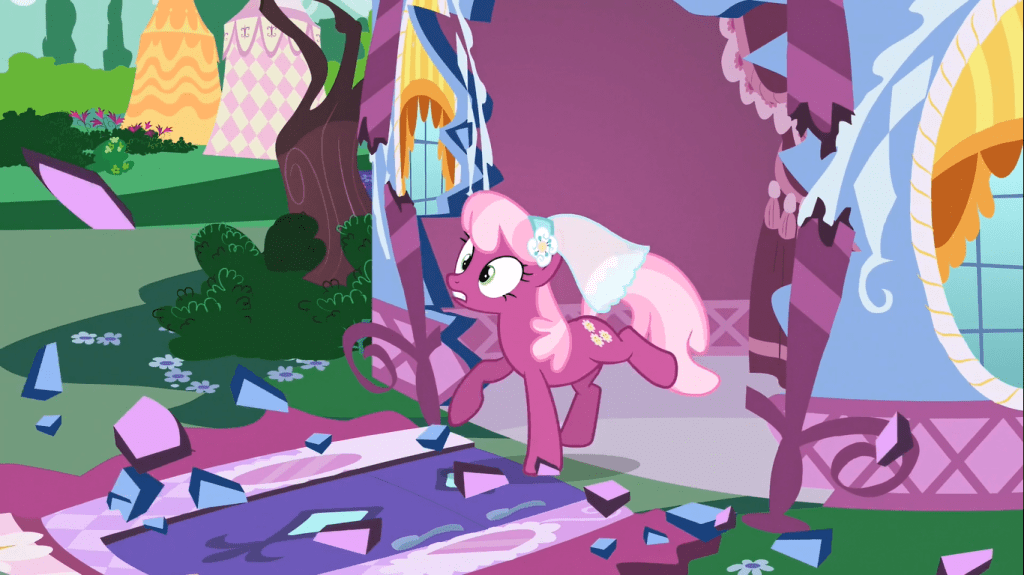 The romantic tension is there, and I feel it’s much more evident to adult viewers than to child viewers. I think this episode is probably the most fleshed out Cheerilee gets in the entire show. This poor lady doesn’t get to be in the spotlight much, always a side character in the Cutie Mark Crusaders’ episodes. But here, we do get hints of her romantic side plus some light snarking… at least until they drink the potion.