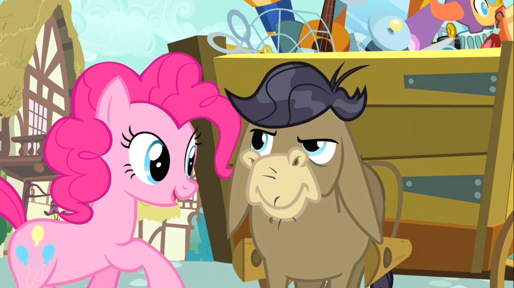 Premise: On her mission to be friends with everyone in Ponyville, Pinkie Pie hits a brick wall in the form of Cranky Doodle Donkey.