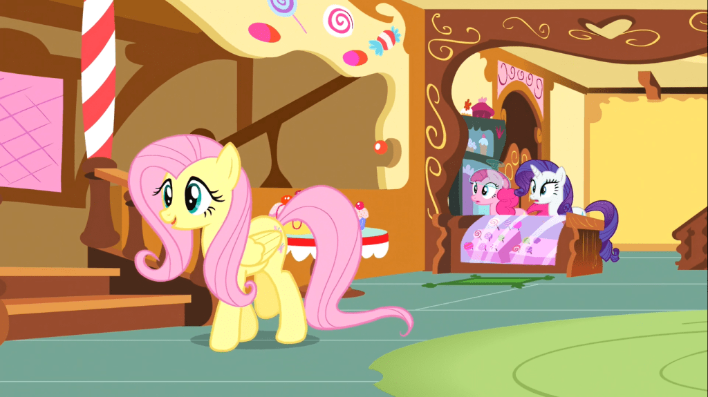Fluttershy’s faint “choo!” is adorable. Another bright spot in this episode.