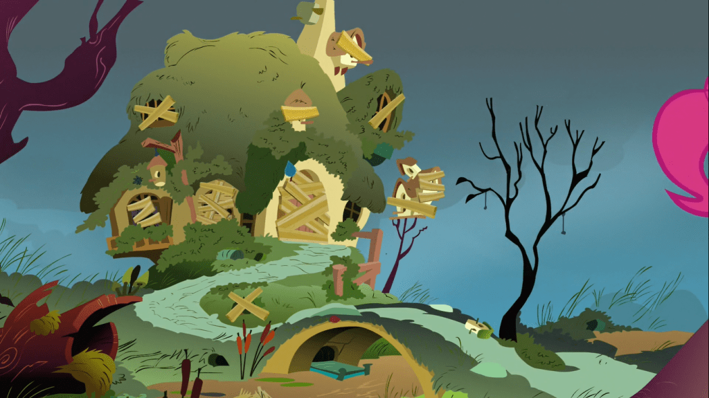 I’m going to pretend it makes sense for the plants around Fluttershy’s house to suddenly be dead after only one night.