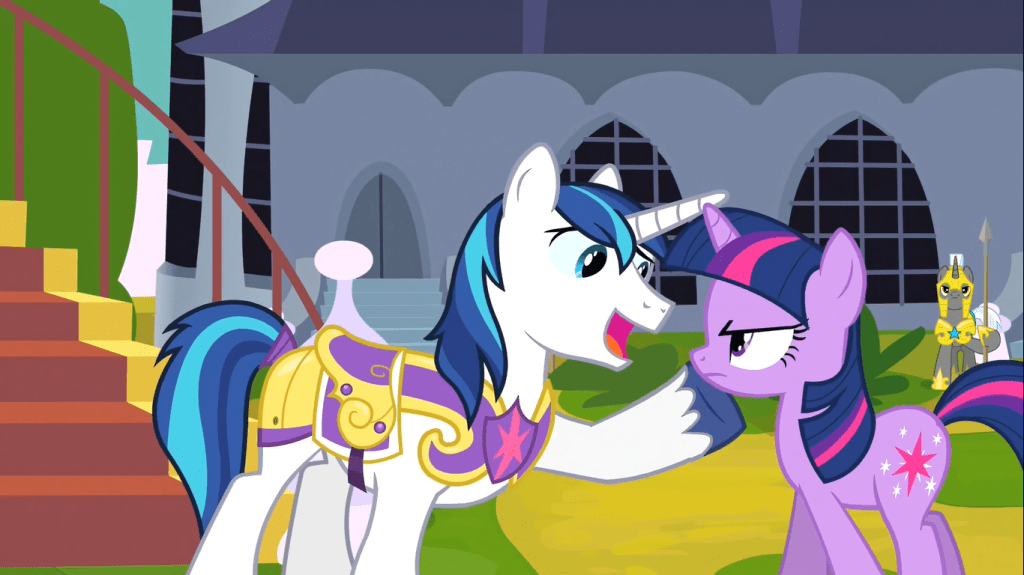 Twilight Sparkle: (imitating Shining Armor) Hey, Twilight. Just thought you should know I’m making a really big decision that changes everything. Oh, never mind. You’ll hear about it when you get the invitation.