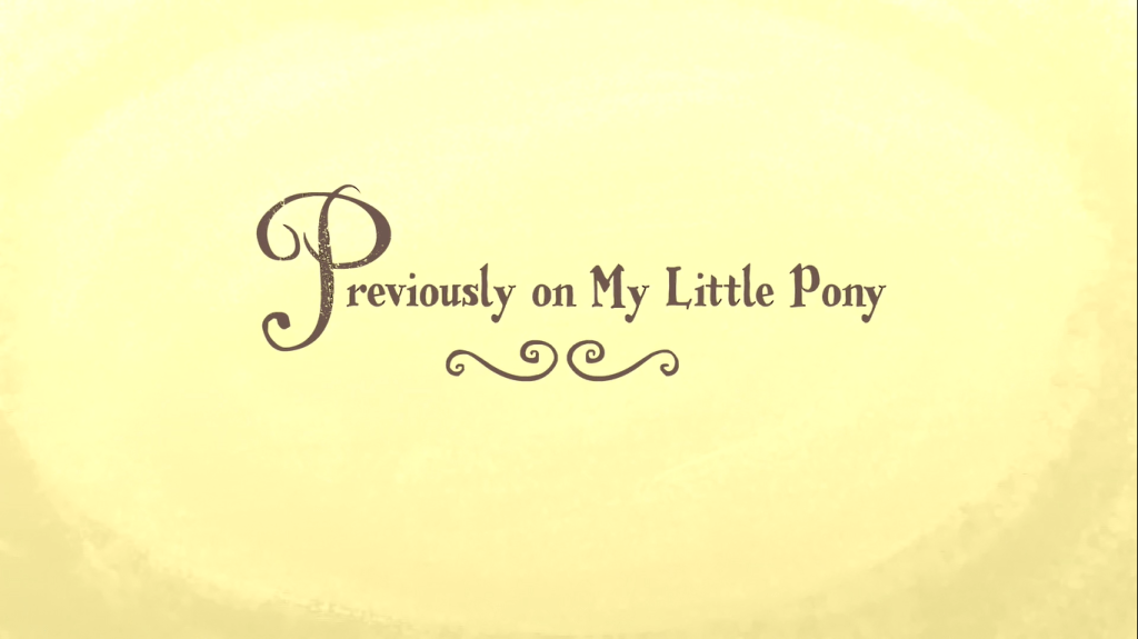You know the drill by now. “Previously on My Little Pony”. Recap of part 1 setting the highlights to dramatic music. A reminder of the cliffhanger we left off on. This time, the recap focuses entirely on Twilight Sparkle, Shining Armor, and the fake Cadance, which helps keep it focused and cohesive, and efficiently reminds us of what all went down in the first part.