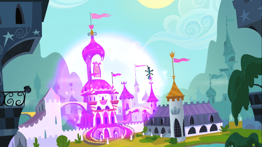If you look closely at this image, you can see Canterlot has a force field around it, foreshadowing the bad news that’s soon to come.