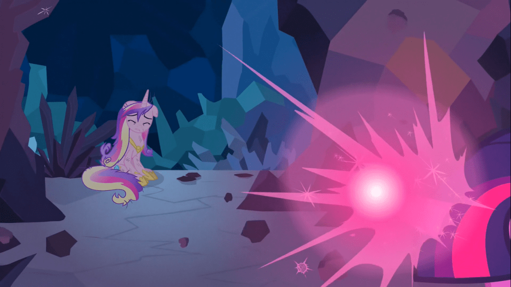 Remember when Twilight Sparkle talked about Cadance’s special ability to spread love, which was demonstrated live in a flashback? This wasn’t just brought up for nothing. Cadance uses this ability when it’s needed most, much like firing a Chekhov’s gun. But while she manages to heal Shining Armor, his magic is helpless to protect Canterlot from the changelings.