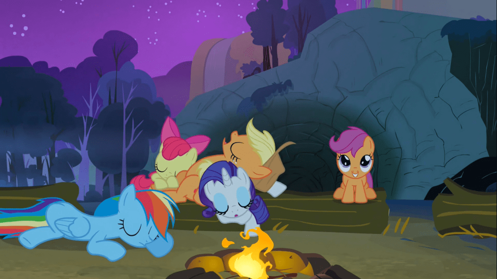 Premise: The Cutie Mark Crusaders and their big sisters (counting Rainbow Dash and Scootaloo as sisters) go on a camping trip, and Rainbow Dash tells stories that give Scootaloo horrible nightmares.