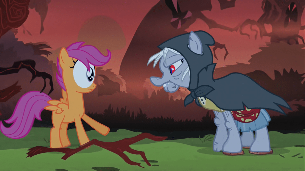 Scootaloo: (coughs and clears throat) Something in my throat. I wasn’t scared at all, haha. Good story!