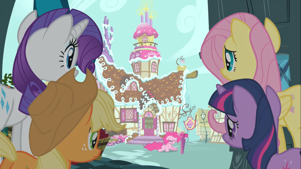 This is yet another episode where Applejack is aggravatingly stubborn until near the end, which is what most of Applejack’s early episodes are like. She gets carried away with thinking she’s in the right, and only after something extreme happens does she realize her foolishness. She’s true to herself and her beliefs; true to what she thinks is right, even if it’s misguided in the long run, and whether it be working to earn money she was supposed to win at a competition or setting up an extravagant family reunion with barely any breathing time. I’m starting to realize that Applejack’s portrayal in the early seasons isn’t as unfocused as I thought. It’s more that her later episodes focus on honesty in a more straightforward sense; Leap of Faith and Honest Apple are good examples. I think Applejack is a tricky character to make memorable episodes focusing on her, since she’s more grounded in reality and less zany than the rest of the Mane 6. But the show eventually gets better at it!