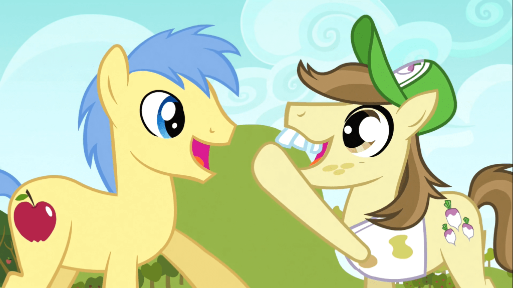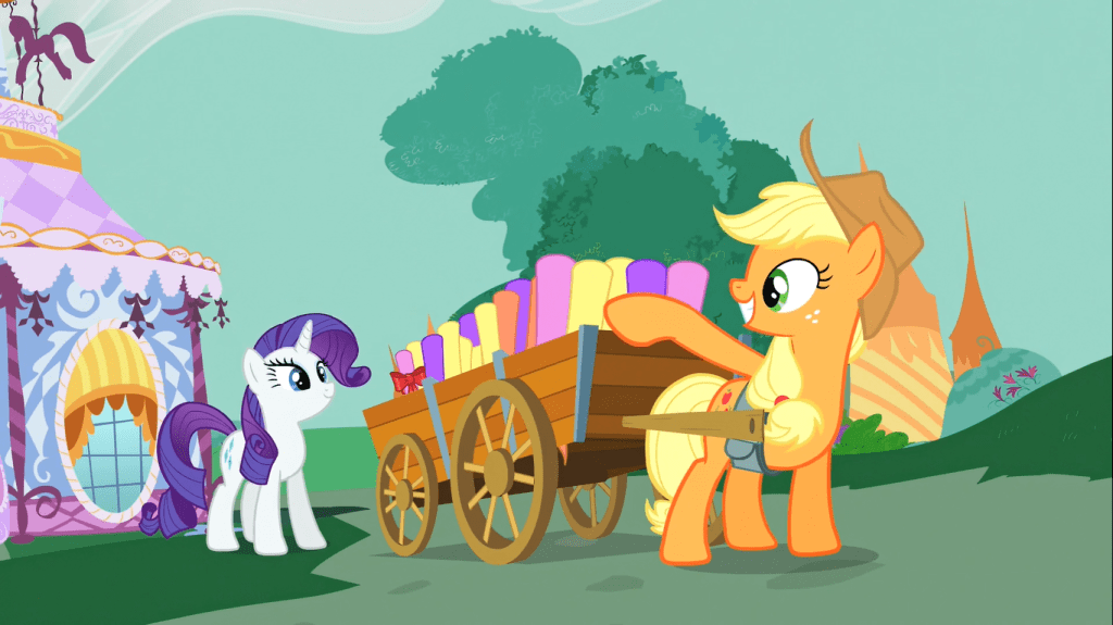 Though Applejack is misguided in how she’s organizing the event, it’s good character development for her to get some help from her friends and siblings. As shown in this montage, Applejack is much more willing to get her friends’ help than she was in Applebuck Season or The Last Roundup. I’ve noticed that Applejack’s early episodes tend to focus more on her obstinacy than her honesty; more on that in the overall thoughts.