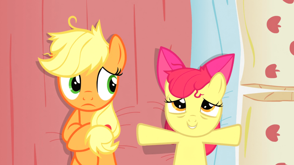 Apple Bloom: (yawns) I can’t wait to see my cousin Babs. We’re gonna do so many fun things together.