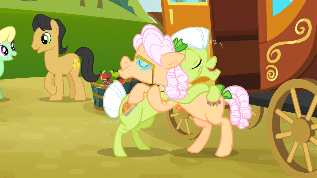 And then all the Apple family relatives arrive, bringing us a fanservicey mix of familiar faces and new background ponies. Here’s a few highlights: