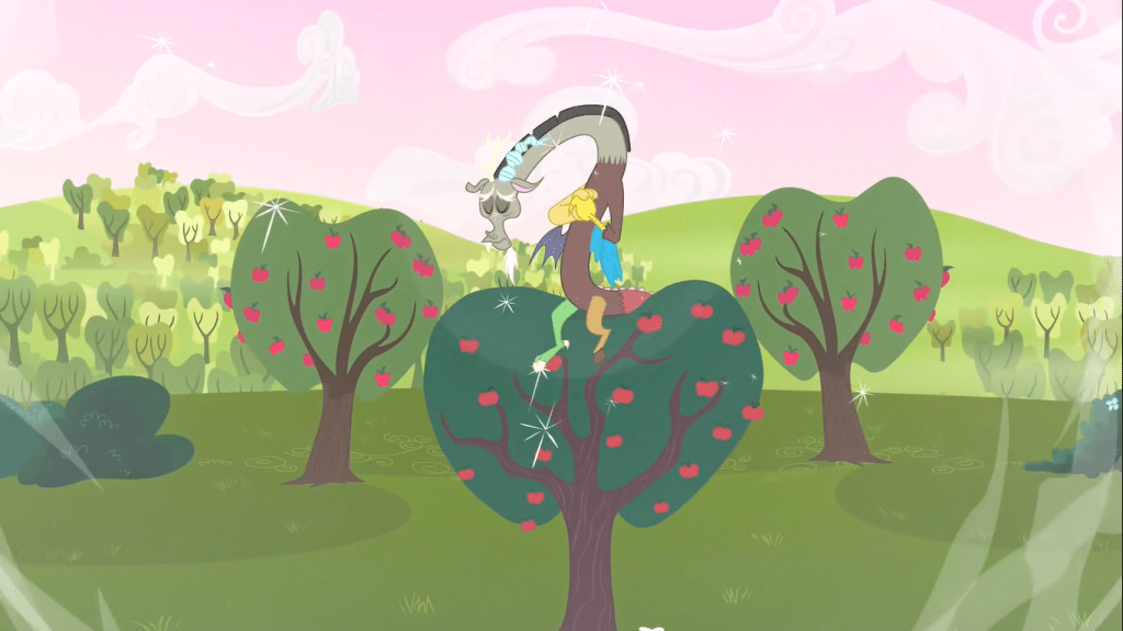 I love, love, LOVE the way Discord groans and then quickly says what he knows everyone wanted to hear while swinging his head around. He speaks for many of the show’s fans who are embarrassed to admit how much they love this show, and I won’t lie, there’s still a part of me that gets queasy about admitting I love this show.