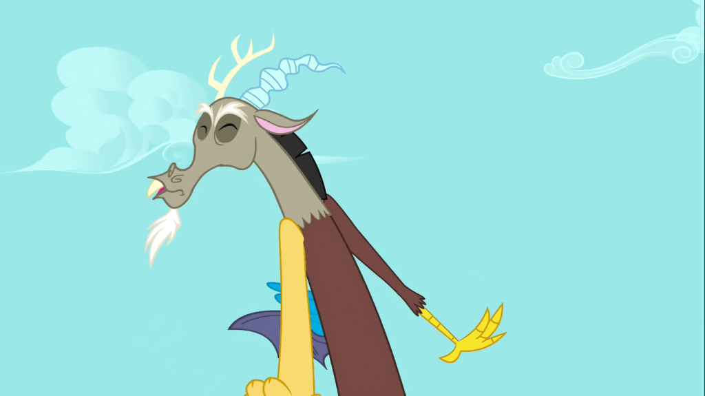 Discord: Haha! You see, she wants to have fun with me because we’re friends. She can’t use the elements against me because we’re friends. I’m free forever! Hahaha!
