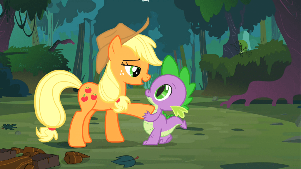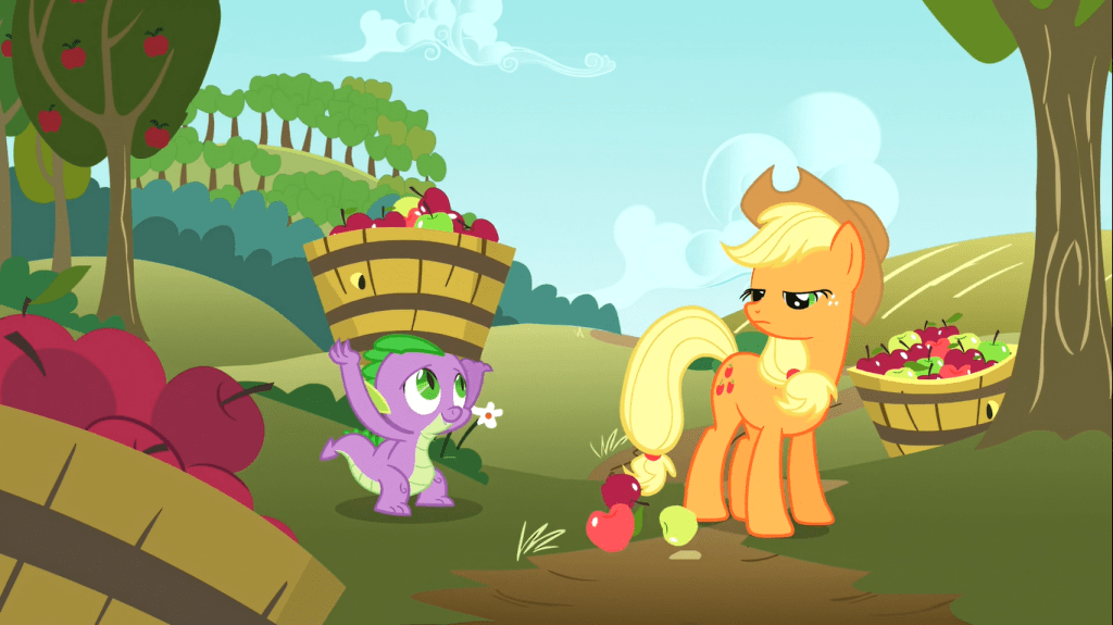Premise: After Applejack saves his life, Spike insists on acting as Applejack’s servant as payback and constantly messes things up in the process for some reason.