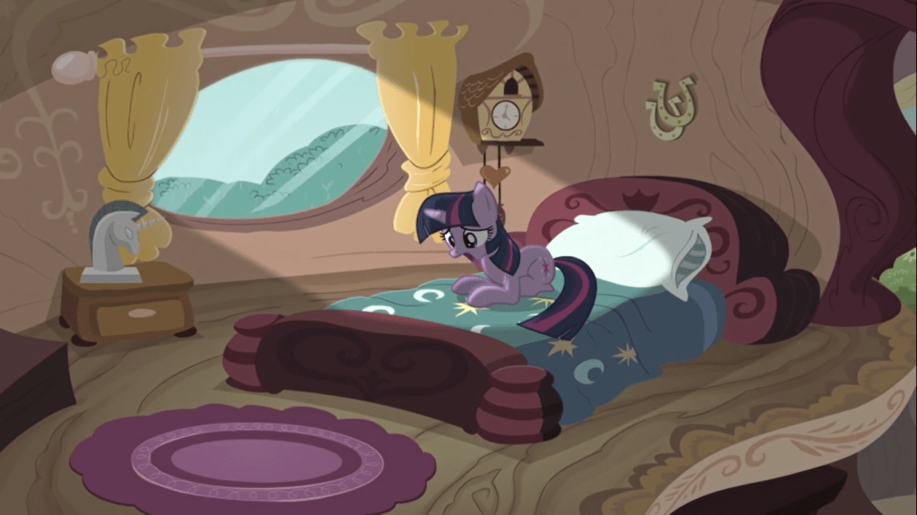 This episode starts with a joyful, triumphant musical number called “Morning in Ponyville”, where Twilight Sparkle wakes up and sings about how this is a perfect morning where nothing can ever go wrong. The fact that this episode immediately starts with this song already tells us that it’s going to be a little different from other episodes of this show; an episode where most things are told through music.