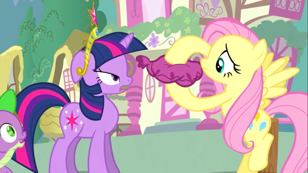 Fluttershy: Hurry, Twilight! Can’t you do some sort of spell to get her out?
