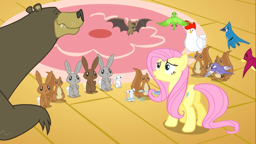 I know this is a very sudden mood switch, but CAN YOU PLEASE APPRECIATE HOW ADORABLE IT IS FOR FLUTTERSHY TO RUB HER HOOVES TOGETHER WHILE SHE CLAIMS SHE DOESN’T KNOW ANYTHING ABOUT ANIMALS????? It is so adorable that my heart just wants to melt into pure goo. I know this show has plenty of large-scale heartfelt moments, but it’s often tiny things like this that truly make my heart explode.