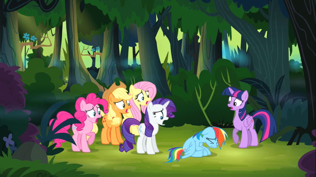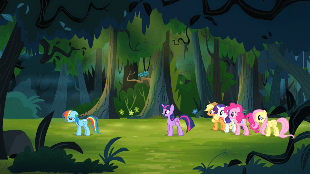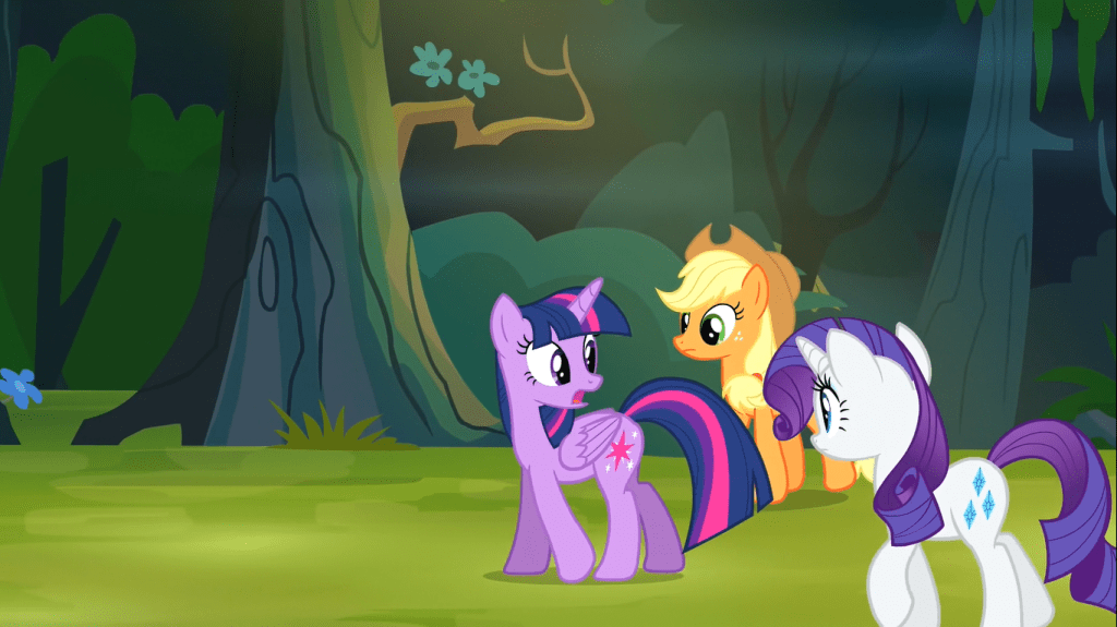 Twilight Sparkle and Rainbow Dash argue about whether they should help Daring Do, and the tense music in this debate belies how adorable it is for these two to both recite plot points from a book series that they know like the back of their hooves. This scene was so obviously inspired by debates fans get into about this show’s lore (or any show’s lore), and I sure can’t stay mad at it.