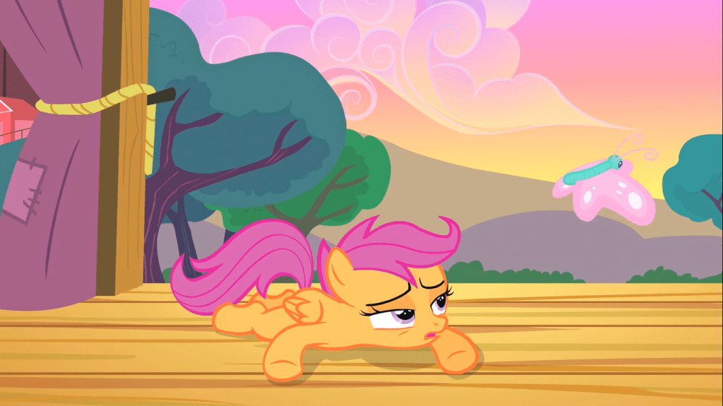 In terms of handling physical disabilities with respect, this episode is a success. My biggest criticism with it is that Ms. Harshwhinny’s insistence on keeping a professional attitude is the only thing that allowed the conflict to happen in the first place. It feels a little contrived and weirdly prevents Scootaloo from understanding how much Rainbow Dash sees in her until the end. Still, this episode provides good character development for the Cutie Mark Crusaders, making them less fixated solely on getting their cutie marks and more interested in doing cool things as friends.