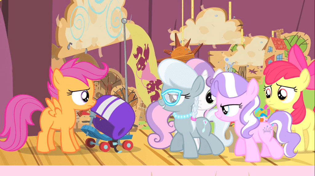 Diamond Tiara: Isn’t it obvious? It is to us. In fact, it’s obvious to everypony. You’re showing all three types of Ponyville ponies, yet you have a pegasus pony
