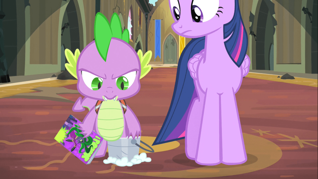 I suppose it’s left for fans to decide what else could lie in the House of Enchanted Comics. That place seems to be a one-off justification for how this episode happened. After this point, I imagine that Twilight Sparkle and Spike agreed not to get books from that library again. This is helped by the fact that Twilight Shakes her head at Spike’s last statement, showing that such naive assumptions are typical of Spike.