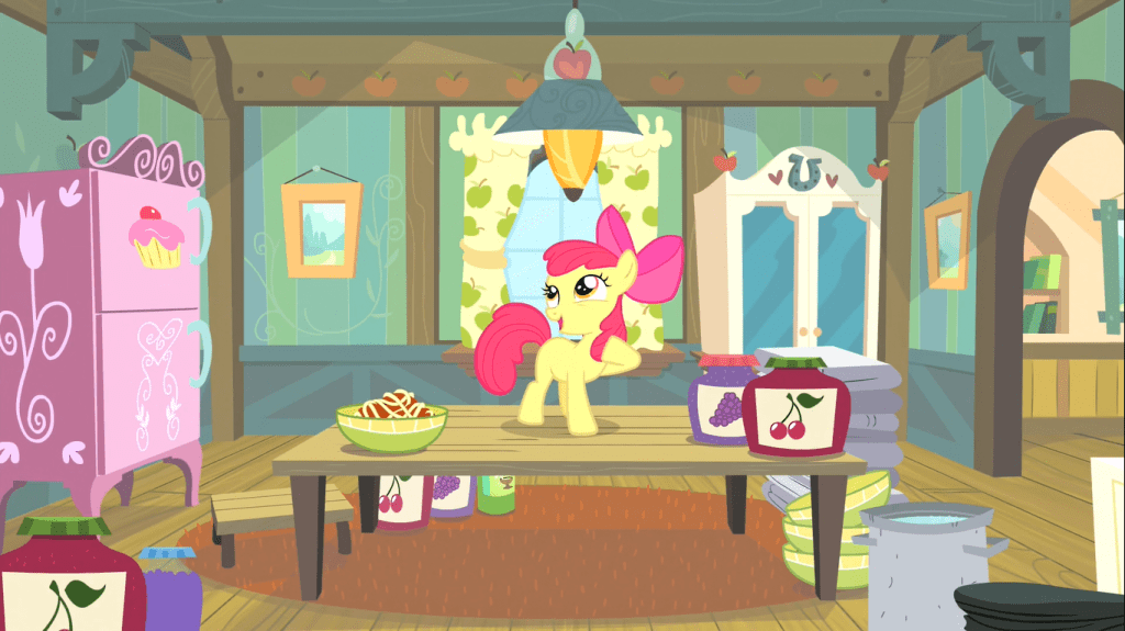 Compared to Applejack, I think Apple Bloom’s portrayal in this episode is done just about perfectly. Everything she does feels very much in-character for her, including her reactions to Applejack being overbearing.