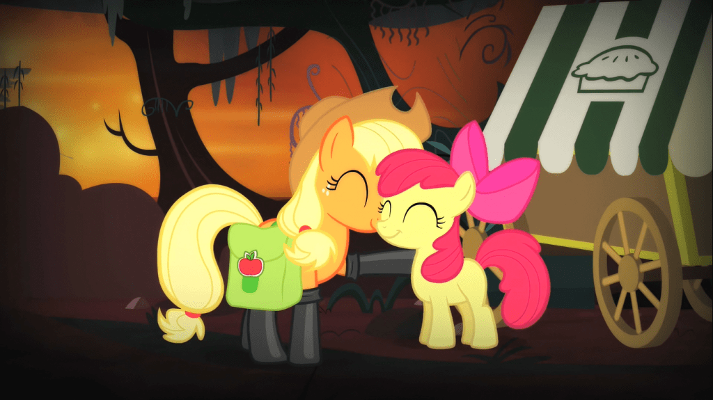 I must say, it’s always nice when both the older sibling and younger sibling learn something in a MLP episode. It matches well with how MLP has people of all ages and backgrounds watching it, not just little girls; the show thus has friendship lessons designed around its varied audience. Applejack learns when to let a younger family member do things alone, and Apple Bloom learns when to let an older one look after her.
