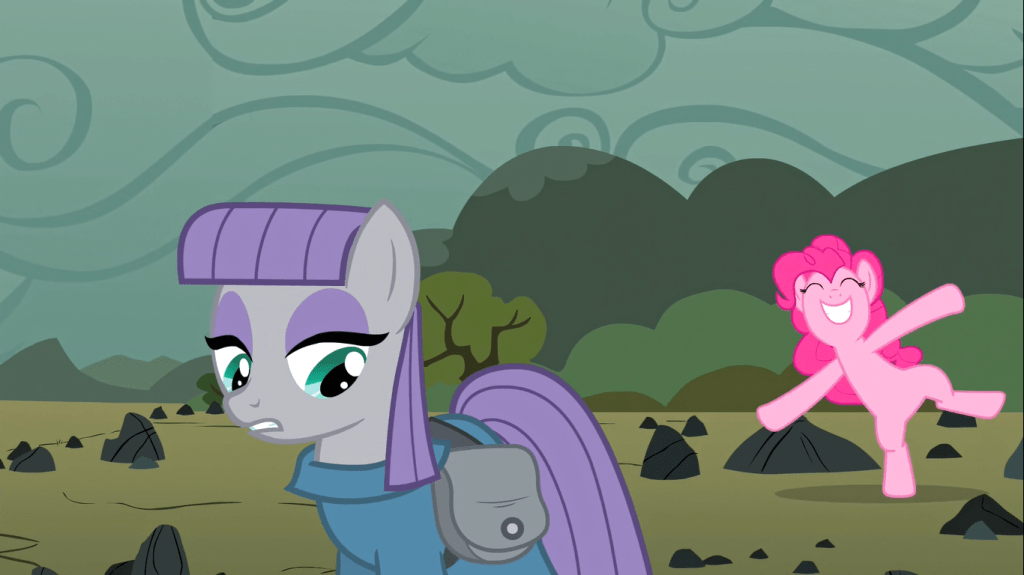 Pinkie Pie arrives at the picnic, then Maud Pie slowly walks there in a comically drawn-out sequence. And what’s the first thing she says to any of the Mane 6?