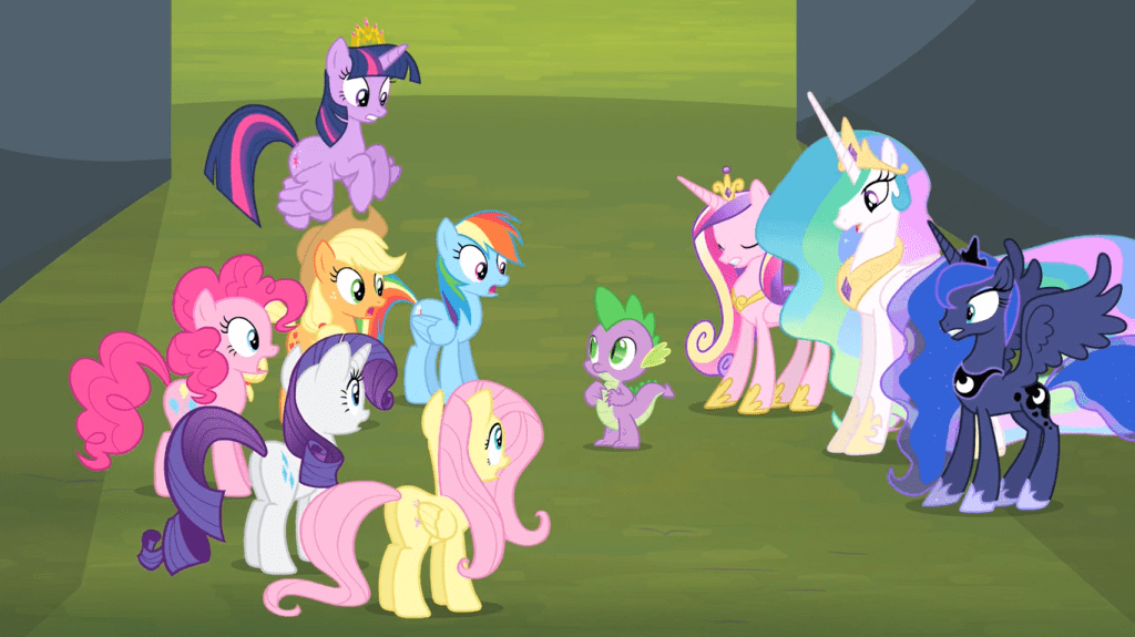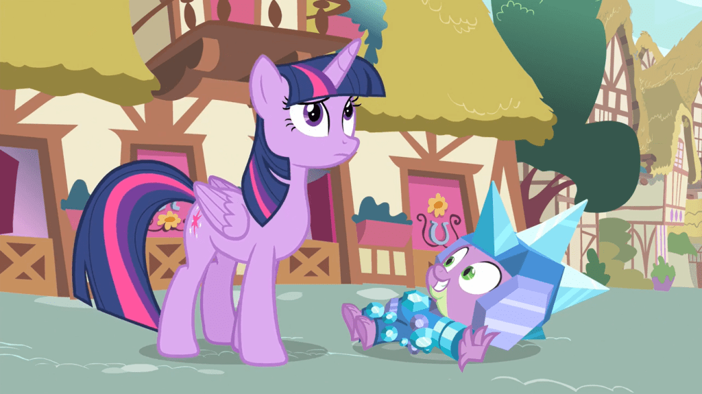 But who has to do all the dirty work and take care of the aftermath offscreen? None other than Twilight Sparkle, and boy is she annoyed about it. She had to pull Luna and Cadance out of their daily business to help her clean up Ponyville, and she gives Spike a real piece of her mind because that’s what good friends do. Spike then tells her she doesn’t look good, then claims he’s just being honest. This ends the episode on a note of annoyance from our usual protagonist, indicating how much the show has evolved since the times where every episode ended with a letter from her.