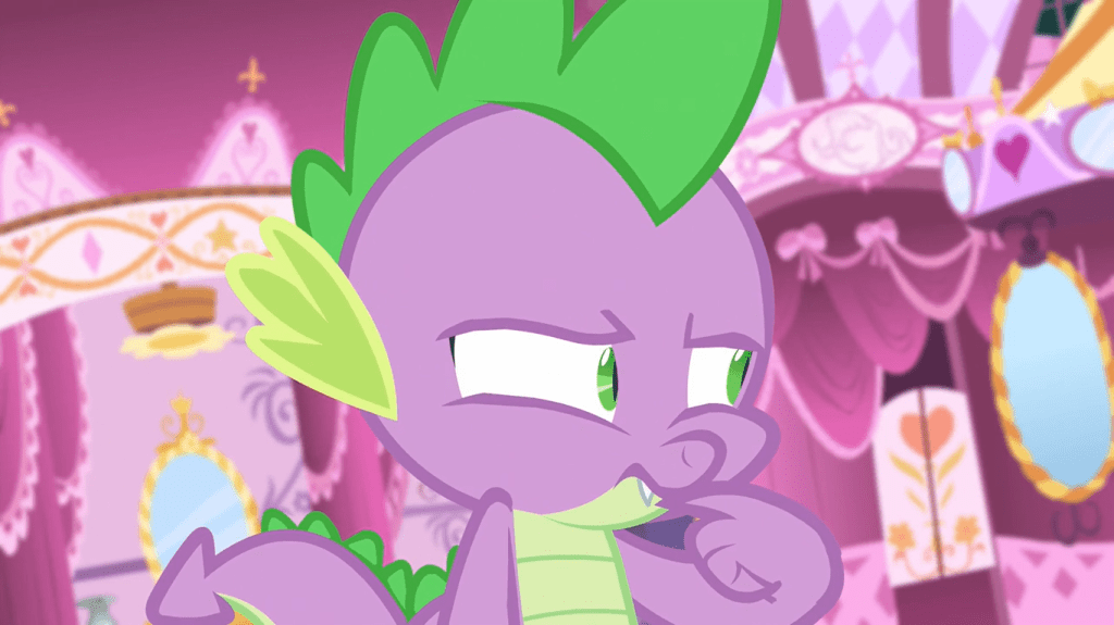 Here, Spike faces a real, understandable moral dilemma that doesn’t feel exaggerated or randomly malicious like his episodes tend to do to him. While the handling of Spike’s character has been somewhat controversial throughout the show, in this episode it’s easy to understand why he thinks it’s a bad idea to tell Rarity she’s going overboard. It’ll soon lead to a nice little message about being honest with your friends.