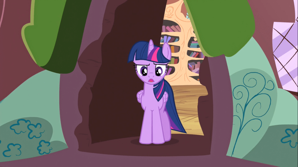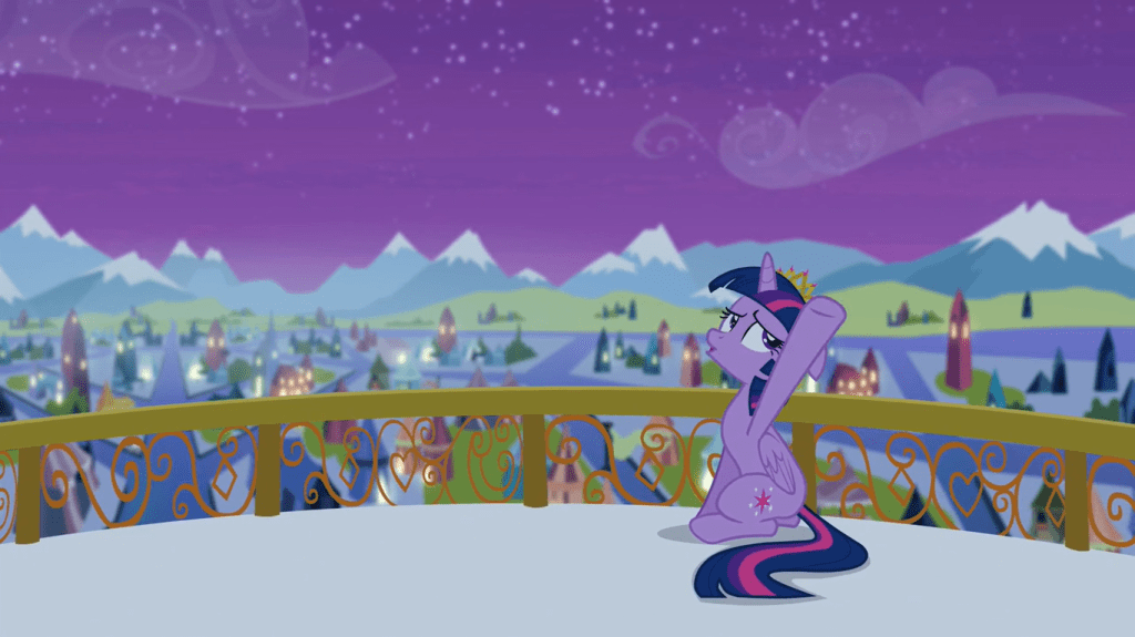 Twilight Sparkle continues discussing with her friends how she feels her princess role doesn’t amount to much, and though they keep telling her otherwise, she still isn’t convinced. There’s only so much that kind words from friends can do for you, and she’s going to prove her worth herself.