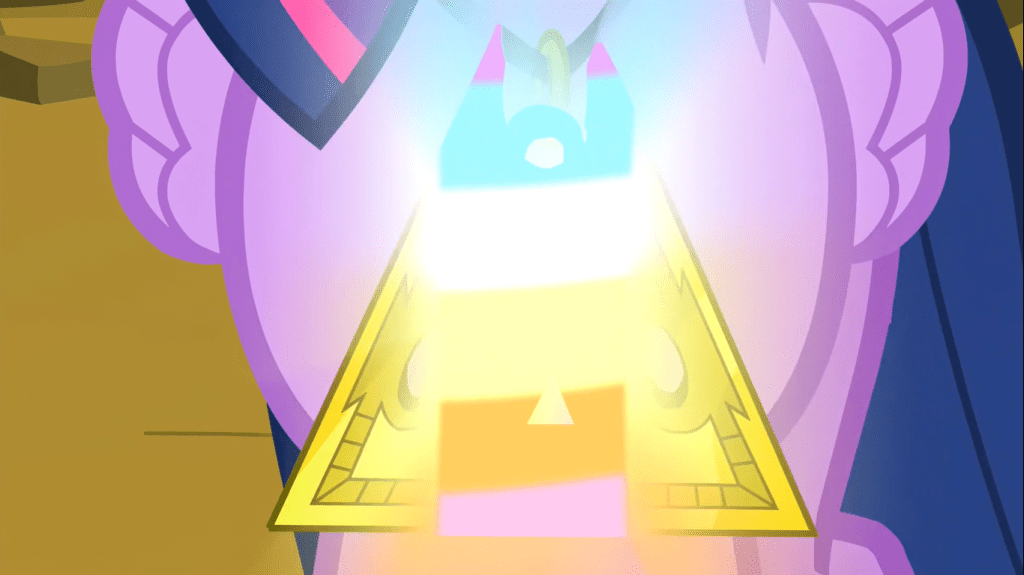 This episode’s recap of part 1 is one of the longer ones, clocking in at one whole minute. It makes sense because a lot of things went on in part 1: Twilight feeling doubtful about her princess role, the Mane 6 figuring out how to open the chest, the introduction of Tirek, Discord being swayed towards Tirek’s side. This entire two-part episode has so many plot threads come together, making for something truly spectacular.