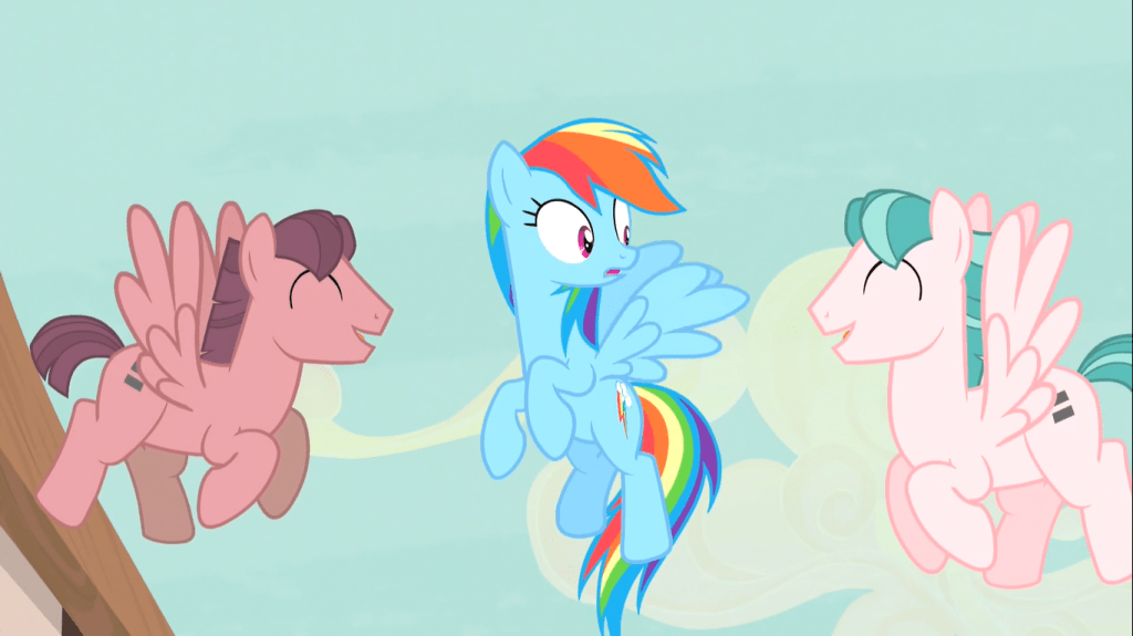 I looked up the name of the dark blue pegasus mare we saw earlier. Apparently it’s Night Glider.