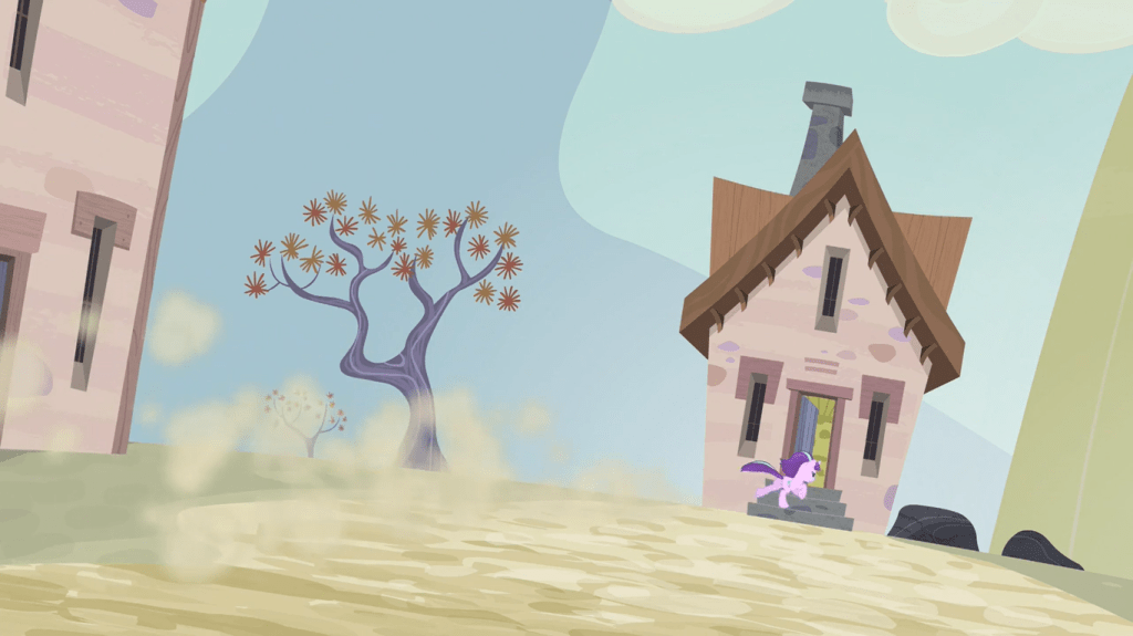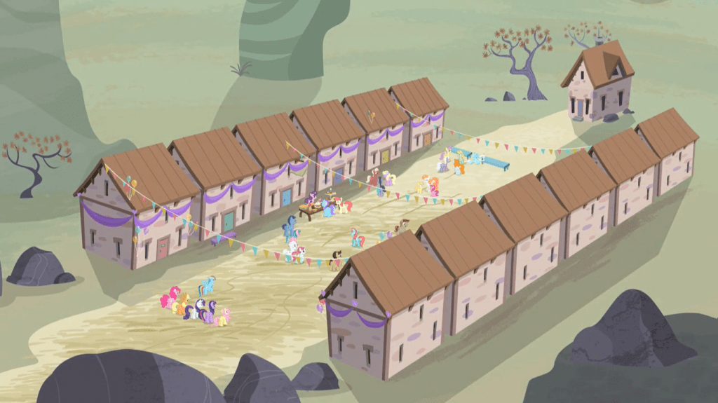 And the lone house at the end hints that Starlight Glimmer is only pretending to participate in this supposed equality.