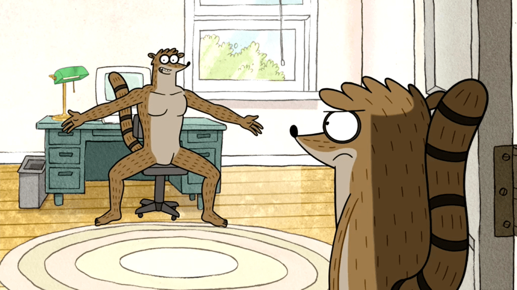 Given that it took me over a decade between first watching and finishing Regular Show, and that it had a fair amount of influence on my life—my main Internet username before my current one was WikiRigbyDude—I think it’s only right to talk about this show on my blog. But don’t worry, I won’t make a lengthy ambitious post series analyzing every episode. Instead, I’ll talk about the show season by season in three blog posts, and discuss various episodes along the way that I think are highlights. Unlike a certain show involving horses, most Regular Show episodes are only ten minutes each, meaning there’s usually not that much to say about each one.
