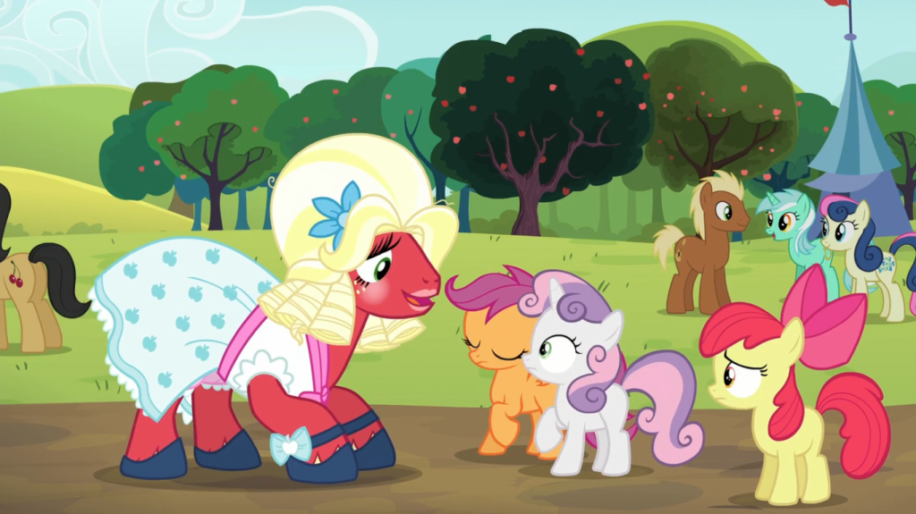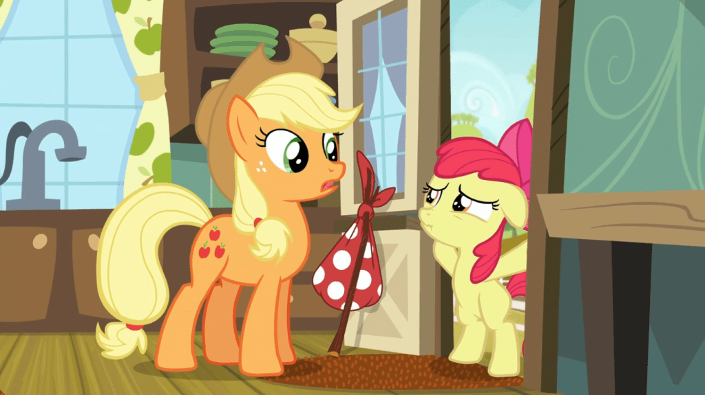 Apple Bloom: I mean… let’s face it. You dressing up as my cousin Orchard Blossom was a pretty crazy idea in the first place.