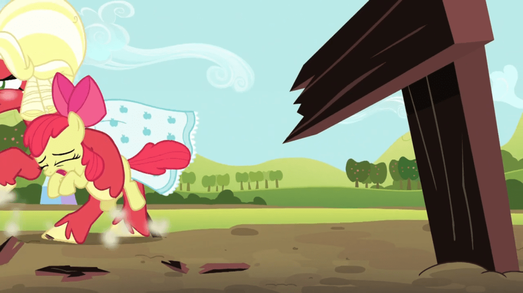 Big Macintosh: Oh my, that certainly didn’t go as I planned. But don’t you worry. We’ll get you a blue ribbon yet, Apple Bloom.