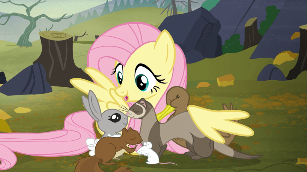 Fluttershy yet again has to rescue an animal from the crossfire, and here’s something the Hooffields and the McColts have in common: they both don’t know how to take care of animals. This is a relevant piece of the mystery of their conflict’s origin.