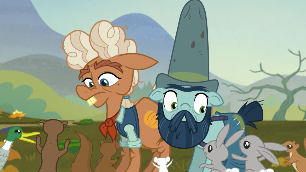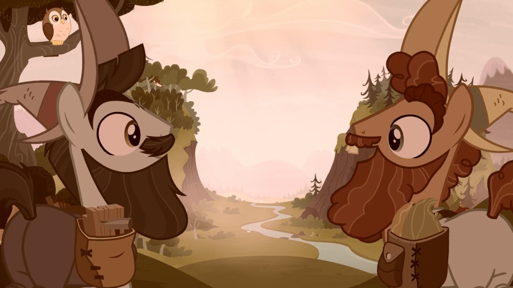 What’s interesting about this conflict is that it’s one of the longest-running friendship conflicts in the entire show, one of the few that transcends a usual pony’s lifespan. It might not be the longest if you count villain backstories like Luna’s millennium of imprisonment, but it’s still a very long one. I would presume Grub Hooffield and Pies McColt were the grandfathers of the families’ current leaders—this is a long enough time for the ponies to forget where the rivalry originated, but short enough that the tale being passed across animals is somewhat plausible.