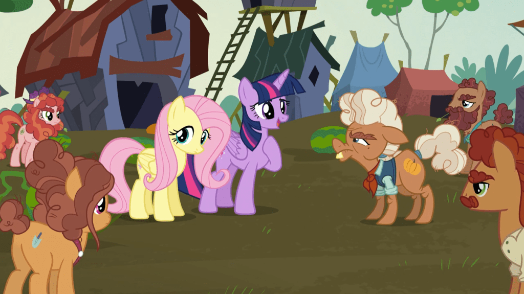 Next up, Twilight Sparkle and Fluttershy head over to the McColts to learn their side of the story. It’s admirable that they’re now willing to see both sides of a conflict—this was something they had to learn back in the early seasons.