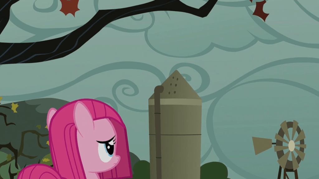 After Twilight and Spike leave, Pinkie Pie provides us a lapse of humor when she delivers a cake, realizes no one is there, and bites into it herself. Such lapses are exactly the right way to make the freaky parts even freakier.