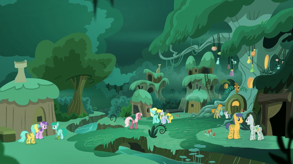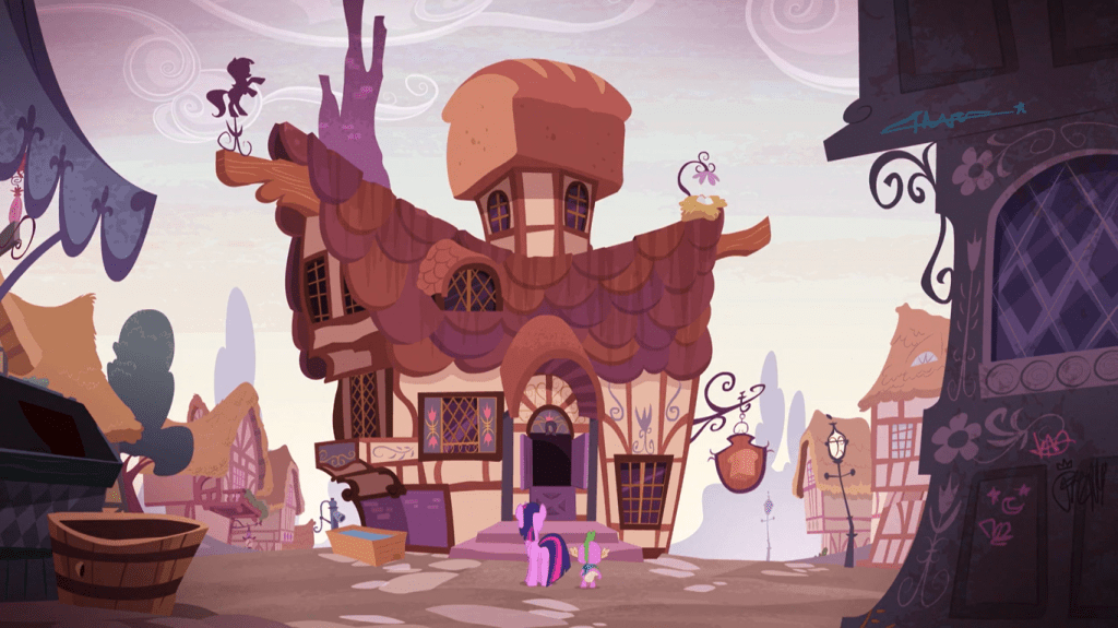 Starlight Glimmer takes Twilight Sparkle and Spike back to the past at her hometown, which much like the town she raised a cult in, is unnamed here. Thankfully, when this town is revisited in The Parent Map, its name is revealed to be Sire’s Hollow.