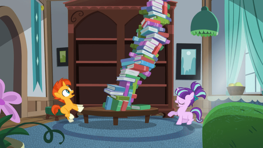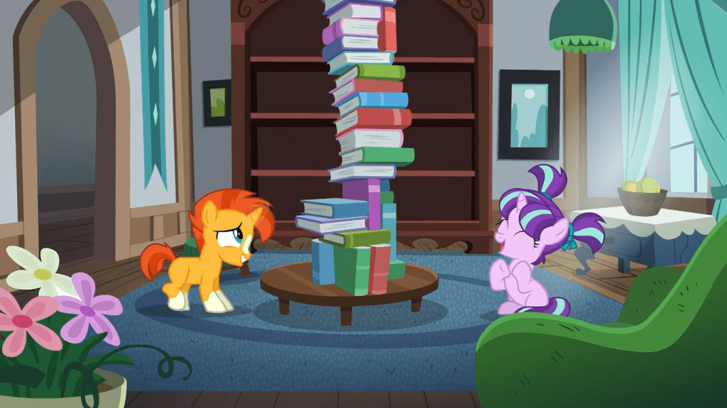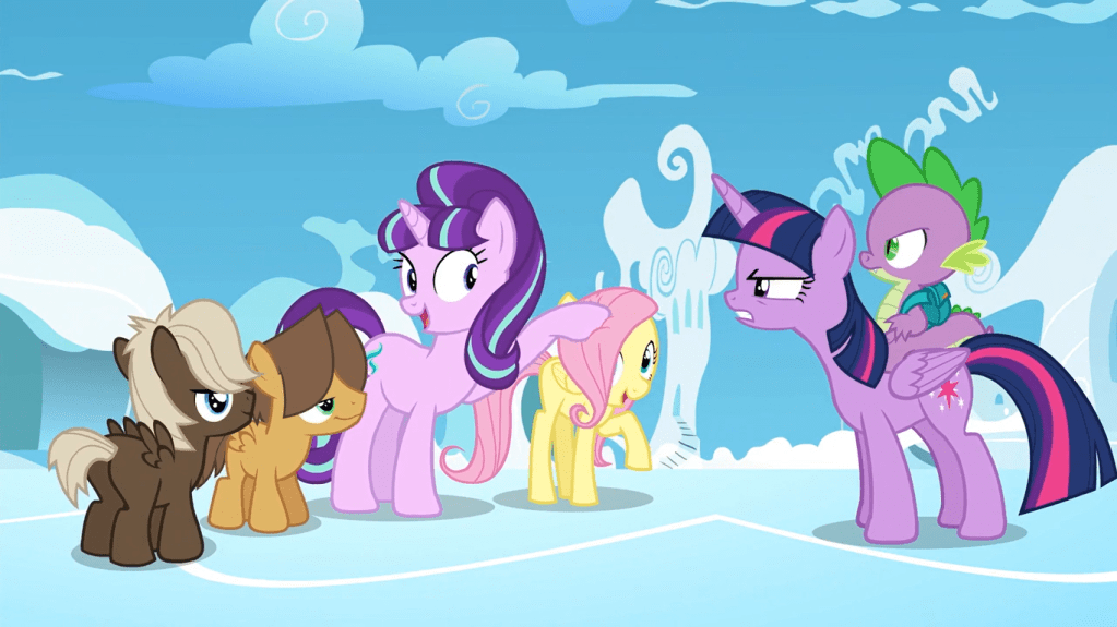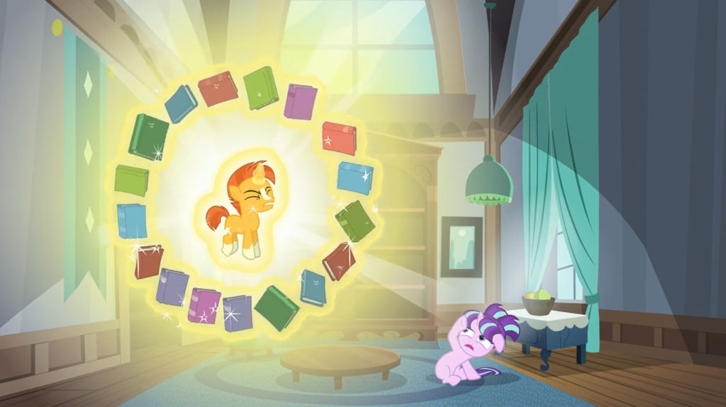 As a foal, it’s clear Starlight Glimmer didn’t find it easy to make friends. She had a special connection with Sunburst, who like her was far more interested in studying magic than the wonders of the outside world. As such, it was pretty brutal of Sunburst’s family to ship him off to an elite magic school because they’re convinced he’s a supreme genius without thinking about his best friend at home. Much like Twilight Sparkle, Sunburst regularly gets hit with presumptions and an exaggerated image of his skills, which I can easily connect to, but I should revisit this topic in the season 6 premiere—that’s the first time we meet present-day Sunburst in person.