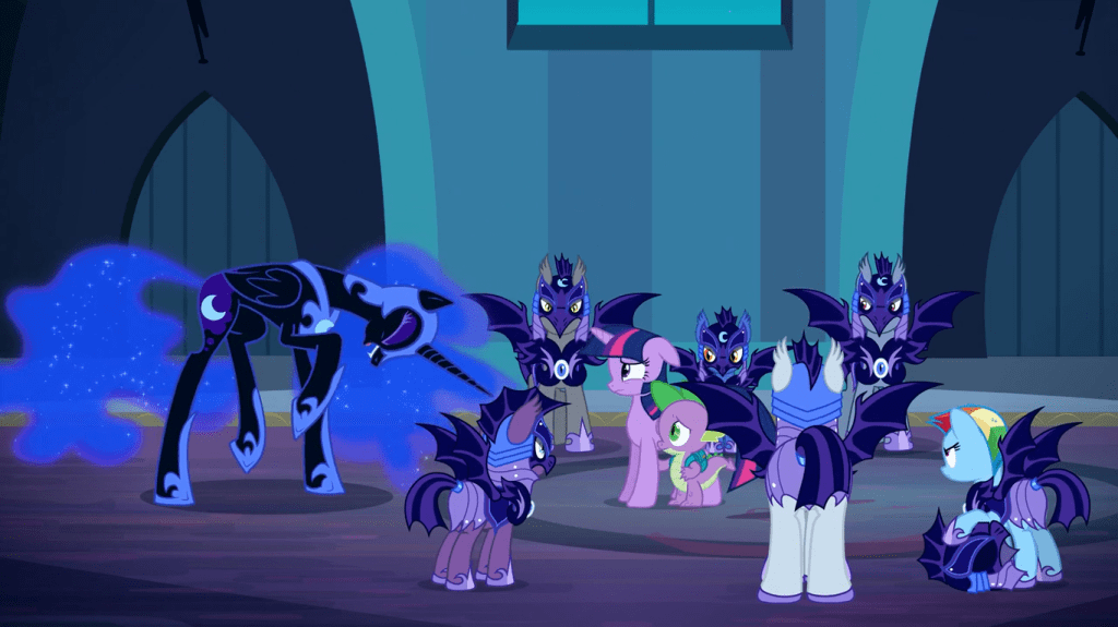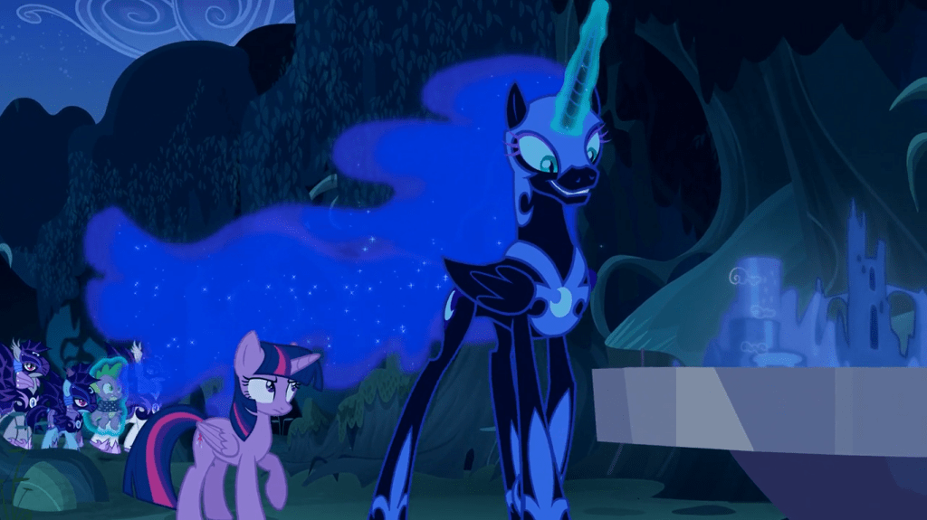 Yes, this is the only timeline where we see regular old Luna alive, which presents a conundrum for speculating how this timeline came to be. If Nightmare Moon was defeated and reformed using the Elements of Harmony, then why wasn’t Discord? Here’s an idea: in this timeline, Nightmare Moon was defeated a different way.