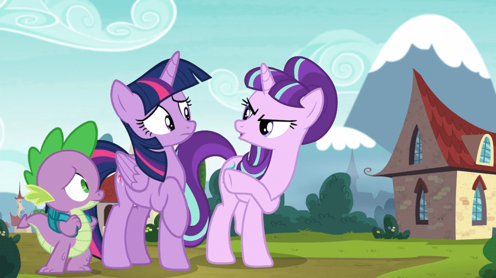 It’s been a recurring theme in season 5 for a character to feel so disillusioned with friendship due to a prior falling out that they view the Mane 6 as smug doofuses who talk out of their asses. We saw it with Gilda, we saw it with Moondancer, and now we see it with Starlight Glimmer—each of them had much worse luck with friendship than our main cast did. Deep down, I sense that Starlight wants to be important and heroic too, and once she’s reformed, she will get that wish!