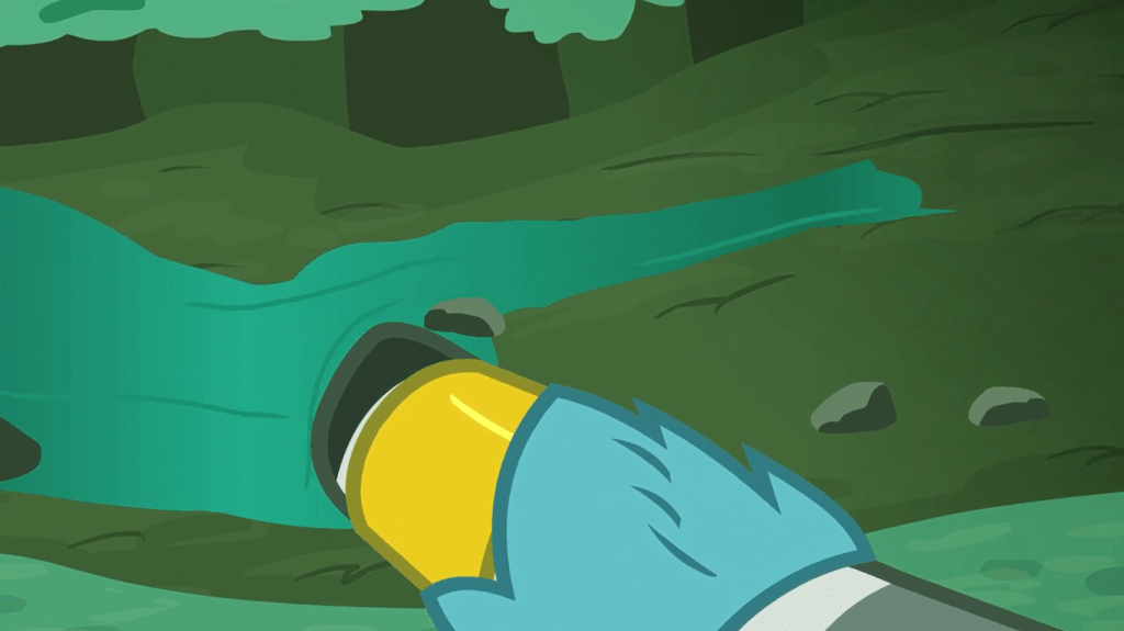 When Twilight Sparkle recaps how she and her friends got their cutie marks, I can tell all the pieces are coming together in Starlight Glimmer’s mind. In Amending Fences, she learned that someone with a nearly identical upbringing and personality to Twilight Sparkle would be friendless without being mentored under Celestia’s wing. In What About Discord?, she learned that time travel is real and can cause enormous differences with the slightest nudge. And now, she’s learning that the group of ponies who have saved Equestria multiple times hinge upon one event: Rainbow Dash’s rainboom. Twilight is kindly recapping all these important stories about important ponies to an audience that surely consists of well-meaning unicorns who would never do anything skeevy with this knowledge.